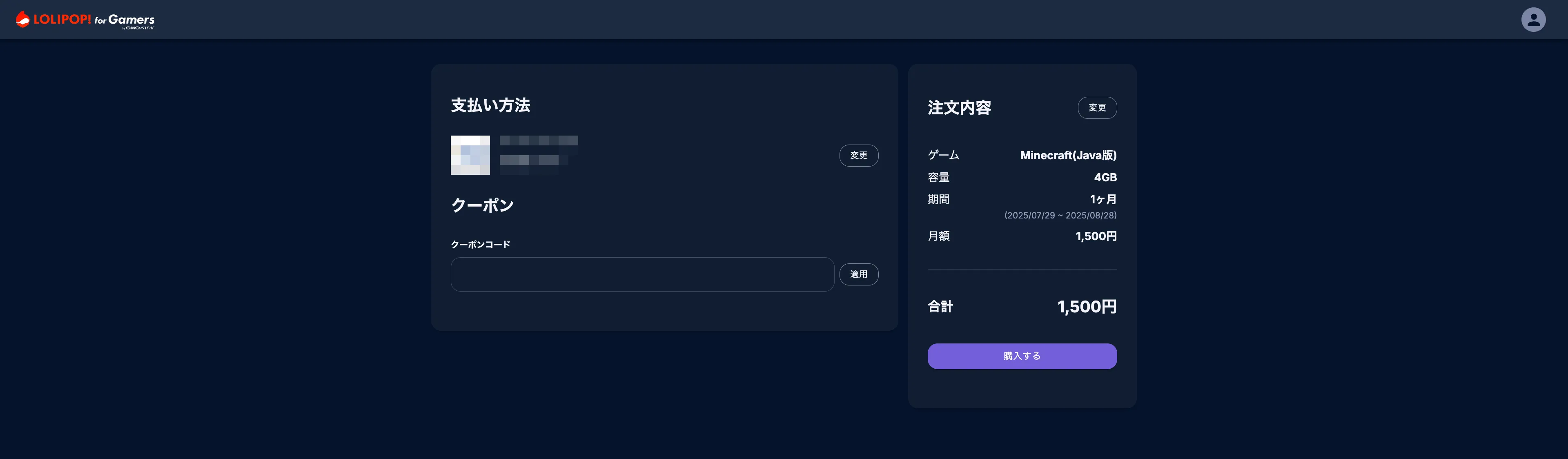 長い期間マイクラを楽しむ予定のある方は、②で長期のプランを選択するとコストを抑えて遊ぶことができます。