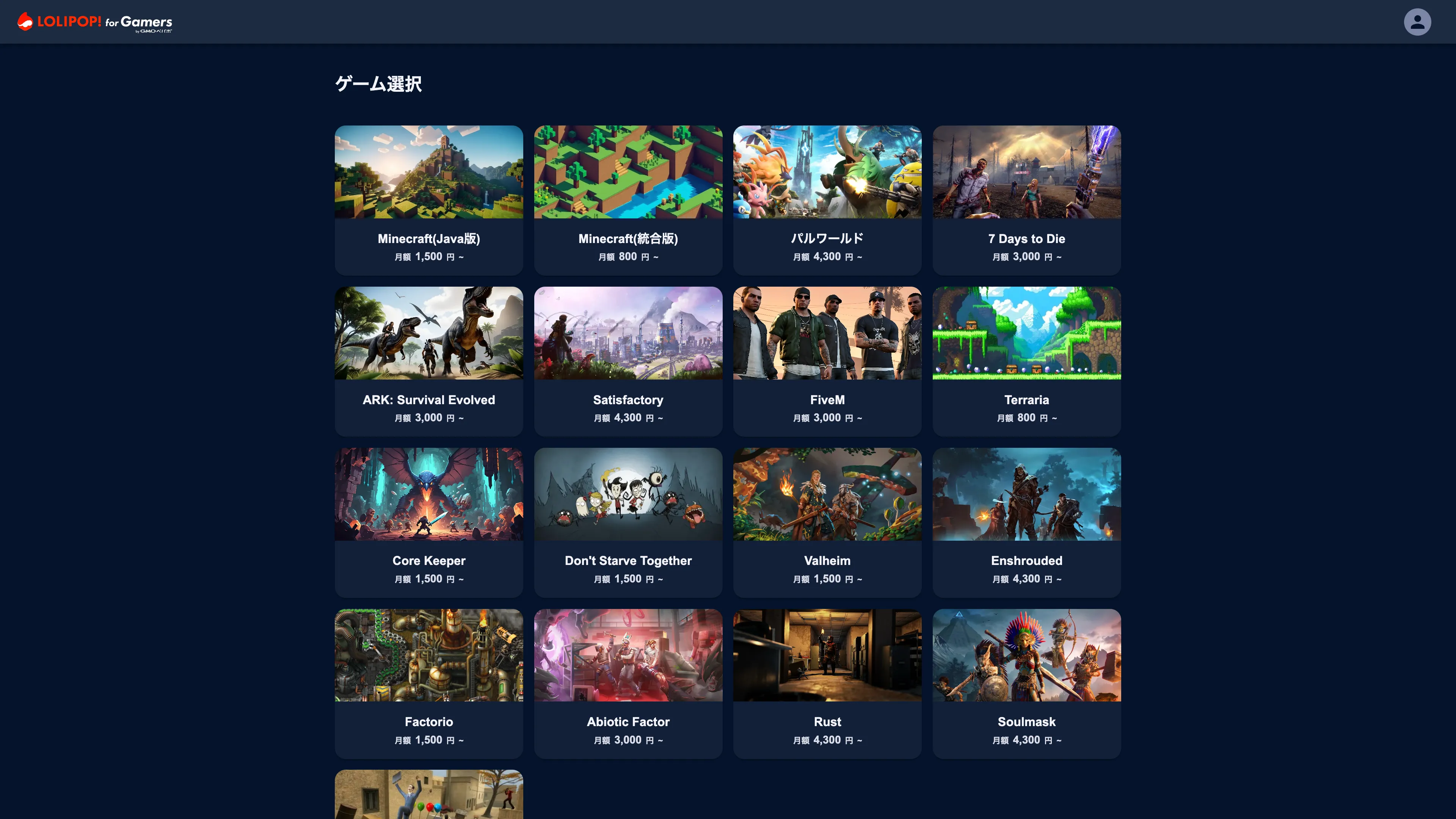 ホストがいなくても遊べるおすすめサーバーの一つ目はロリポップ for Gamersです。